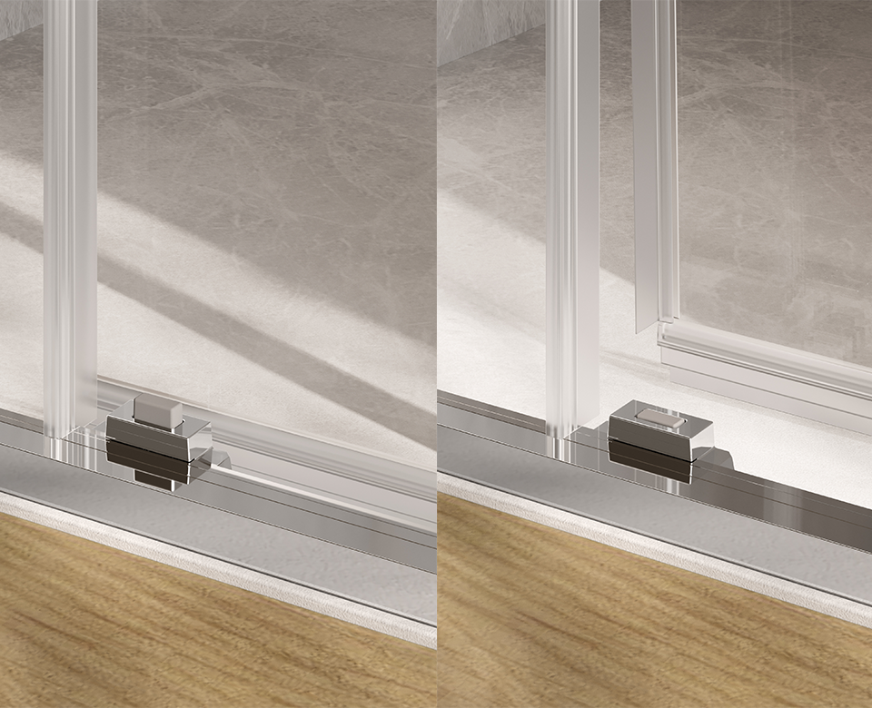 Realizzati in alluminio anodizzato in finitura argento lucido, profili ridotti al minimo indispensabile, pareti in cristallo temperato dello spessore di 6 mm, si adattano anche all'installazione su piatti doccia ribassati.