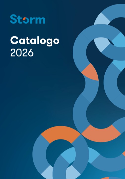 Le sezioni del catalogo STORM 2026 sono sei: cinque linee per l'idraulica e il riscaldamento (rossa, gialla, verde, blu, azzurra) e una dedicata al design.